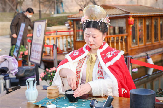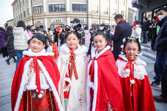 1月16日,“梦回东安 宋福富春”杭州市富阳区新登镇宋韵文化特色街区正式开街,吸引无数市民游览。 “带孩子感受我们这一代人小时候的年味,我们在体验新鲜的同时也是对传统文化的传承。”牵着孩子的“80后”市民黄女士说,她3岁宝宝第一次见到实景写春联、舞狮子、打年糕等年俗活动,快乐无比。
