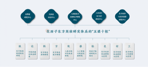 “花西子倡导的东方美妆研发体系,是一个门类完善、技术先进、有中国特色的研发体系。”宜格集团首席科学家李慧良说,“该体系可以用’五梁十柱’来形容。” 截至目前,成立近7年的花西子,已完成50种花卉原料提取制备,30种护肤功效的筛选测试,构建了100多份花卉组方的数据库,拥有了多项植物提取物及特色矿物原料相关的专利。