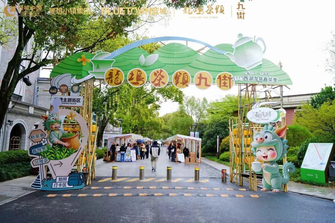 丰富的茶文旅融合项目及产品,提升了小镇知名度与美誉度,在游、赏、品、饮、宿、玩、食、趣的多元体验中,感受茶文化的洗礼。 理想小镇的生长哲学,在龙坞茶镇化作一场“温柔的变革”——“让文化生长”。 每年3月下旬西湖龙井开茶节,融合市集、演艺、销售等为一体,全力打造西湖龙井茶与春天约会的九街形象。纷至沓来的市民和游客,胜友如云,嘉宾云集,共同见证古典与时尚、历史与当下的完美交融,让人们于欢悦中细品春天的第一口鲜汤。