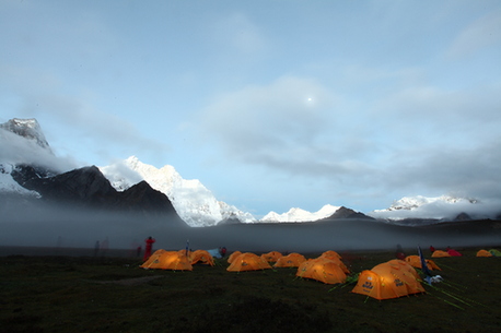勇闯征程的自我蜕变 最为难忘的是,翻越征程中恰逢中秋节,勇闯队员们只能呆在下雨的简陋帐篷里,品尝着主办方专门为大家准备的月饼,在手机无信号的状态下连给家人打个电话都不能实现。因为艰苦,更懂珍惜,这一刻大家反而油然而生幸福的暖意。队员笑言:“也许这是我一生中最难忘的中秋节,一块月饼掉下的皮,我们都一扫而光。“ 在汤湘营地休整期间,23名队员自愿组成两个临时小分队,向东坡大本营方向发起近距离观看珠峰的挑战,一路踩着碎石坡直到海拔6000米处,对珠峰更近距离的仰望,对马卡鲁峰更好的观看视角,都让队员们异常欣喜。正如勇闯队员的感慨:“攀登雪山是一种磨练,一种挑战,一种净化自己心灵的过程。每一次的经历,我都把它当作自我提高的一种精神财富。“ 经过数天的长途跋涉,这支充满激情、勇气与爱心的勇闯队伍顺利完成“翻越喜马拉雅”的伟大征途。这一刻,勇闯队员们深深体会到勇闯精神的可贵,用勇气去挑战人生的高度,用身体力行诠释人生的意义,这也是雪花啤酒一贯倡导的“进取、挑战、创新”的企业精神内涵。 从2005年探索雅鲁藏布大峡谷、2006年探秘长江源、2007年远征国境线、2008年极地探索、2009年挑战乔戈里、2010年共攀长征之巅、2011年穿越可可西里、2012年冲破雪线,到今年的翻越喜马拉雅,“雪花勇闯天涯”活动已连续举办了9届,每一次勇闯都是一次心灵的洗礼,都是一次生命的礼赞。雪花勇闯天涯与越来越多的勇者共同完成挑战的任务,见证生命的奇迹,勇闯精神也逐渐成为当代精神的最好诠释。 |