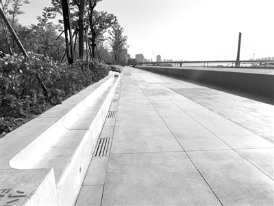 胡先生喜欢的江边座椅,其实是从跑道边花坛“挖”出来的一部分,和风景浑然一体,一点也不突兀。“这个座椅靠背有弧度,高度和深度都刚刚好,坐久了也不会累。”胡先生说。