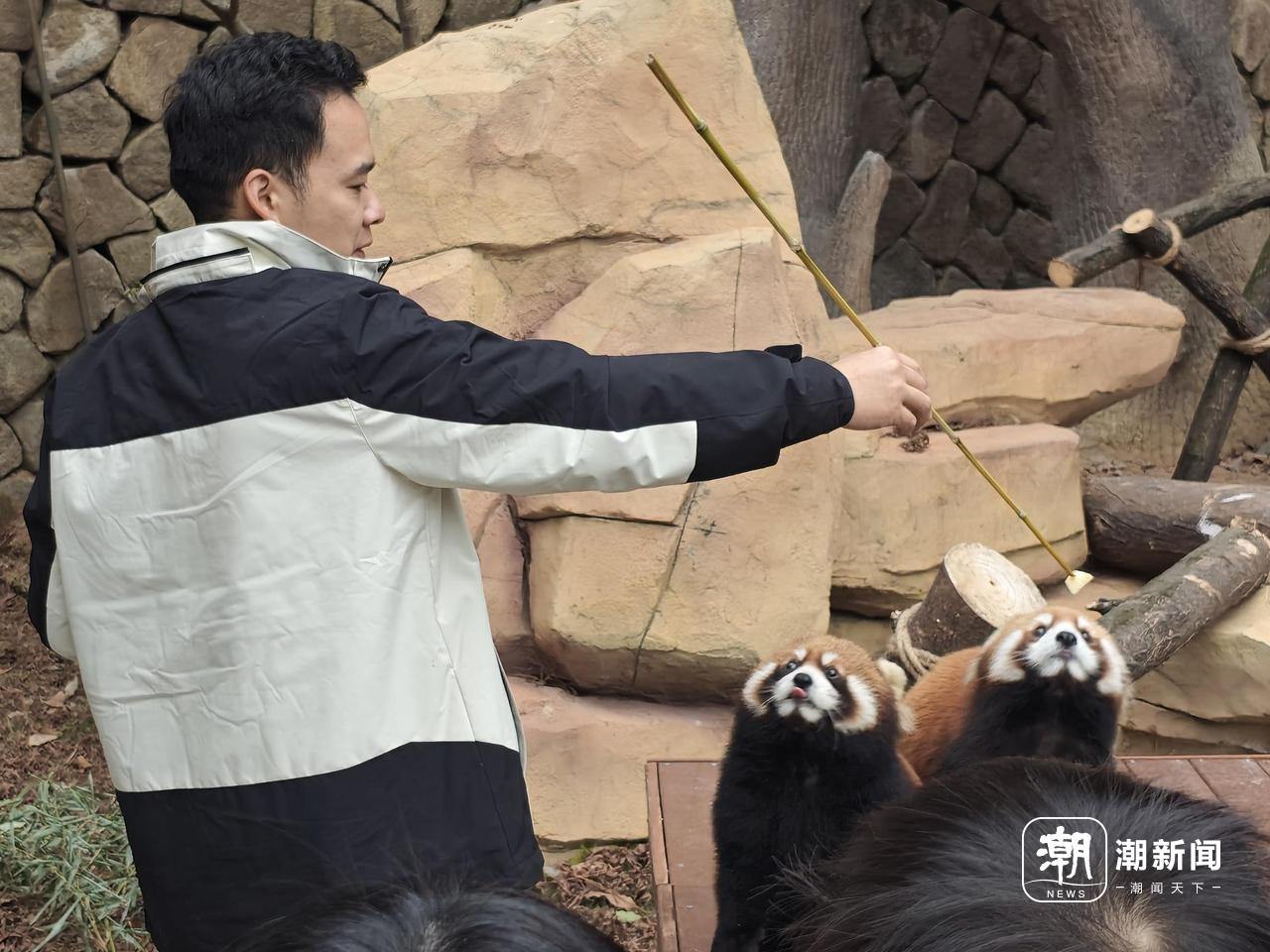 饲养员叫何凯,去年年底来杭州,一直在临平公园里照顾这两只小熊猫。